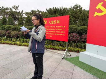 在正式参观前,在党总支书记吴江的带领、支部党员老师的见证下、预备党员范一杨老师庄严宣读入党誓词,表示要坚持永葆初心、牢记使命、严守纪律的决心,并努力将对党的理论的学习与自己的教学科研工作实践紧密结合。