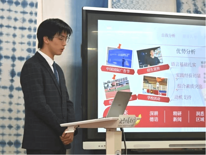 备赛期间,褚静璇、谷泉乐、夏艺航三位同学结合个人职业目标和德语专业就业特色,深入分析自身优势与行业需求,细化职业发展路径,不断优化职业规划方案。现场答辩等环节展现出扎实的专业素养和清晰的逻辑思维,得到了评委团的高度认可。