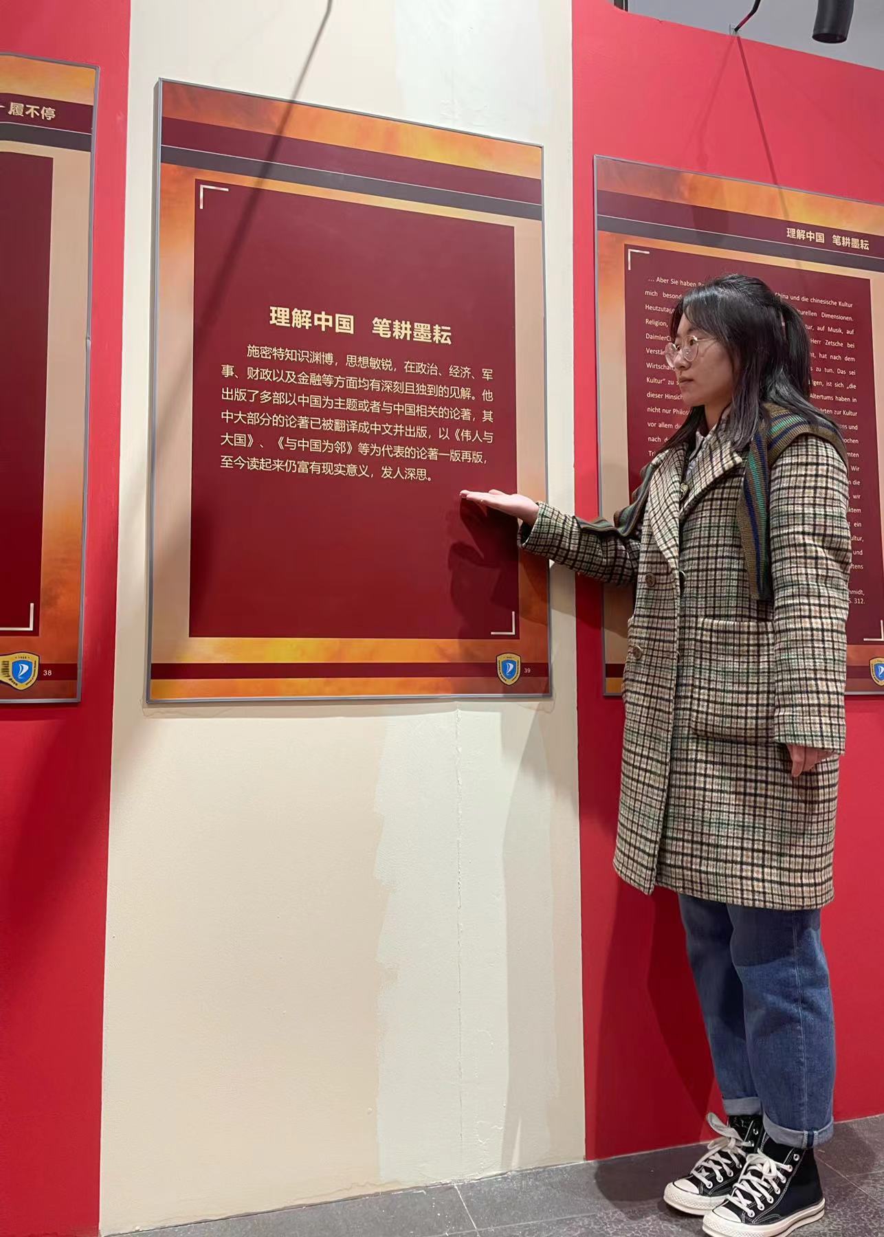岁月留声,弦歌不辍。同学们接过前辈手中的接力棒,为传递青年之声贡献着自己的力量。目前“施密特与中国”主题展览正在图书馆一楼展出中,志愿者们仍坚持在岗位上,期待为每一位参观者提供讲解。